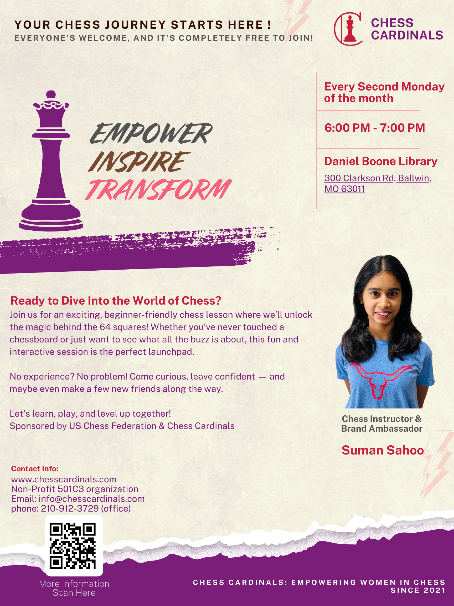 | Thank you all for supporting Chess Cardinals! | See Event dates on the flyer |