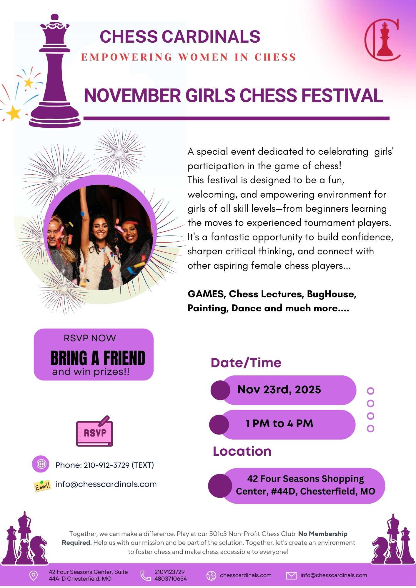 | NOVEMBER GIRLS CHESS FESTIVAL (11/23/25) | winter chess camp (12/22/25) |