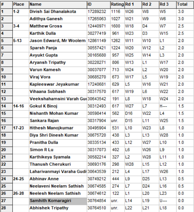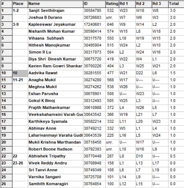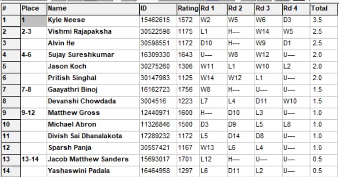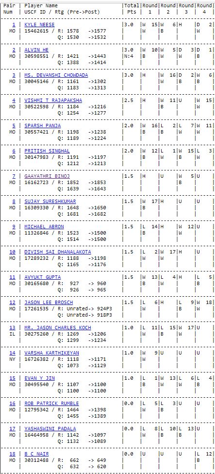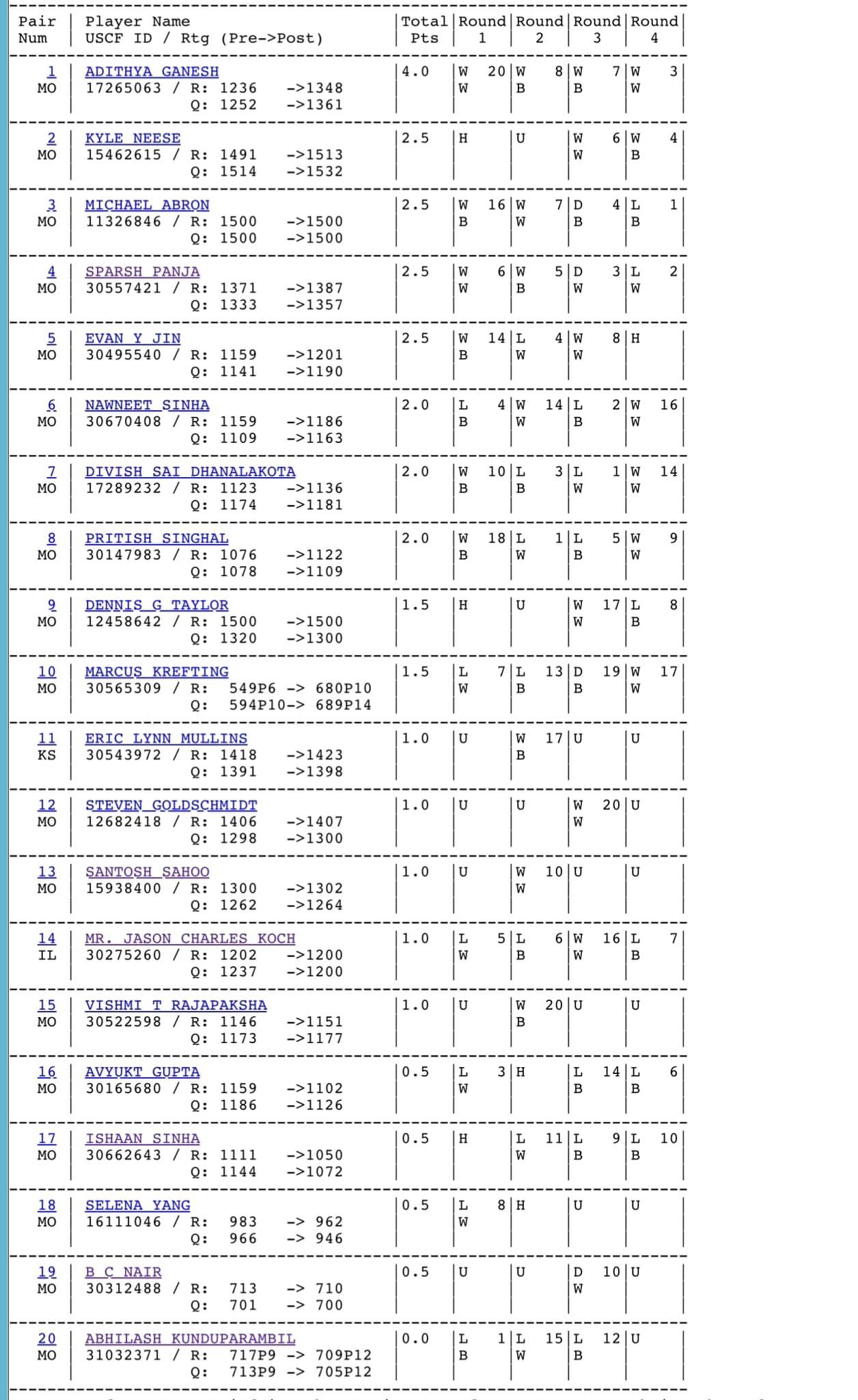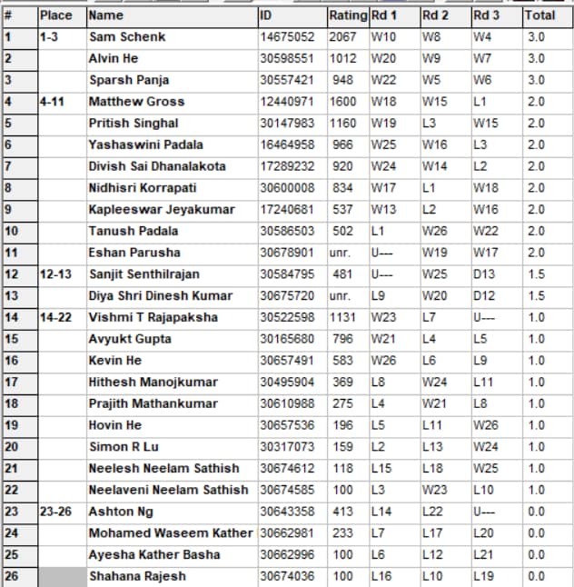 Please remember that we are here to play chess, learn something new, make good friends and have lots & lots of fun! We learn how to take win or loss gracefully, over the board and in life in general as a natural extension and we urge parents to encourage kids/scholastic players to be at their best etiquette. Yes, USCF points matter but few points upset will not matter in long-run. Chess is not a 100 m Race but is more like a marathon!