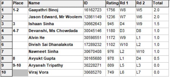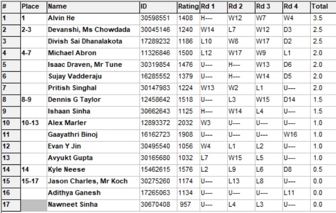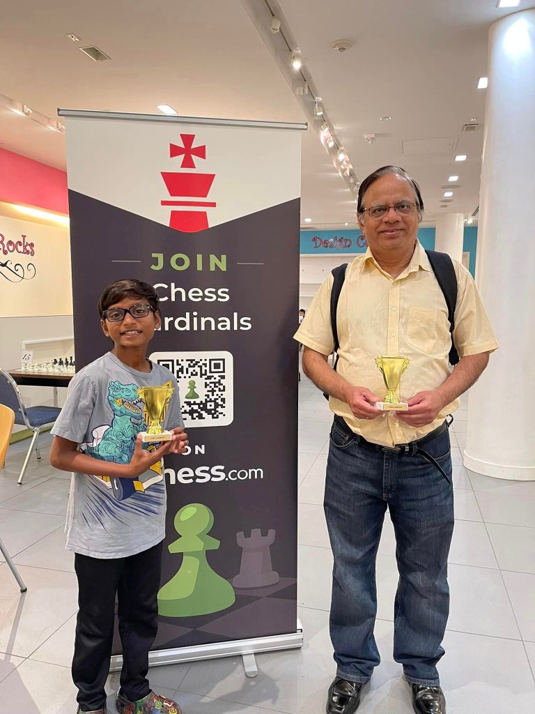 5/22/23 – Quick ‘Serious Sunday Swiss75’ update for everyone. Congratulations to Divish, Sparsh & Evan on winning prize money in “Above 1000” section!! 🤩🤩. U1000 section had a clear winner with Sai winning all four games. Runner up trophy was shared by Aryan and Satish. Thanks everyone for participating!