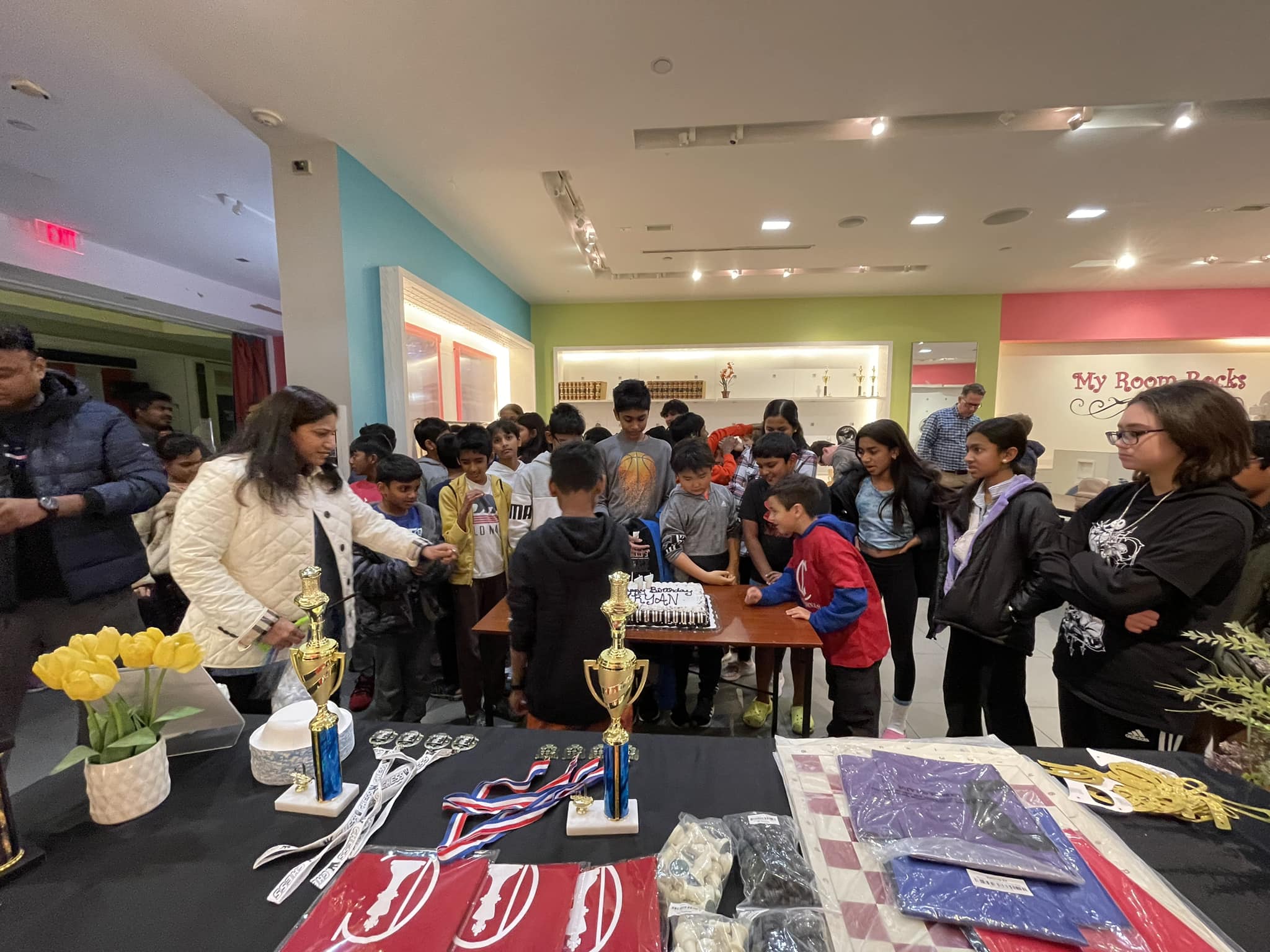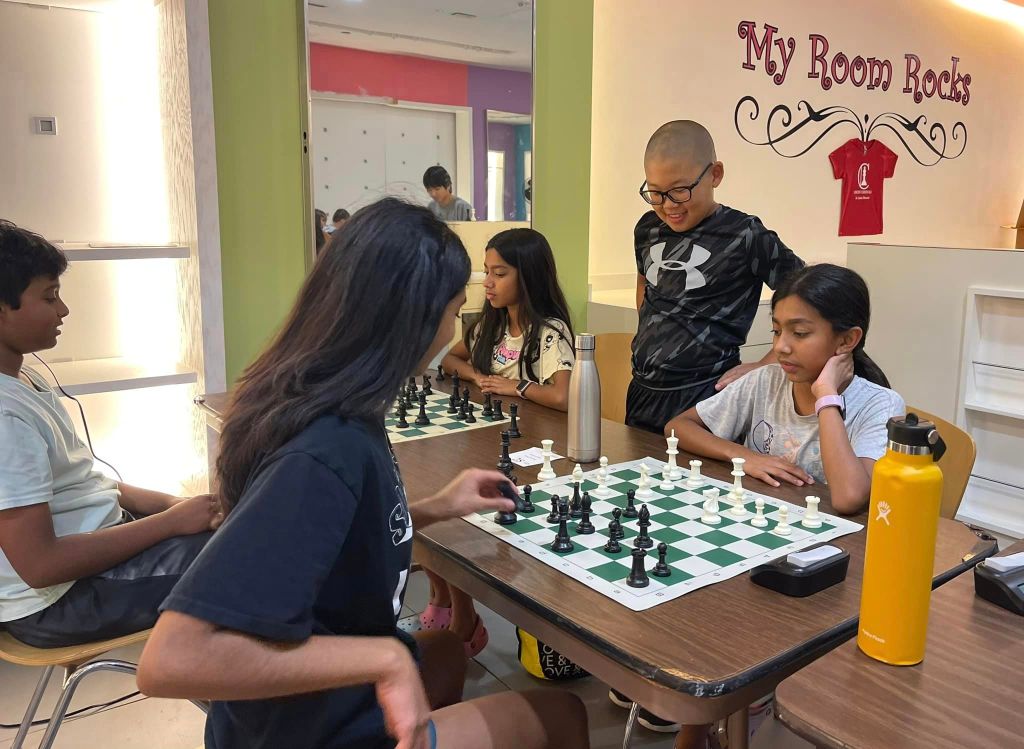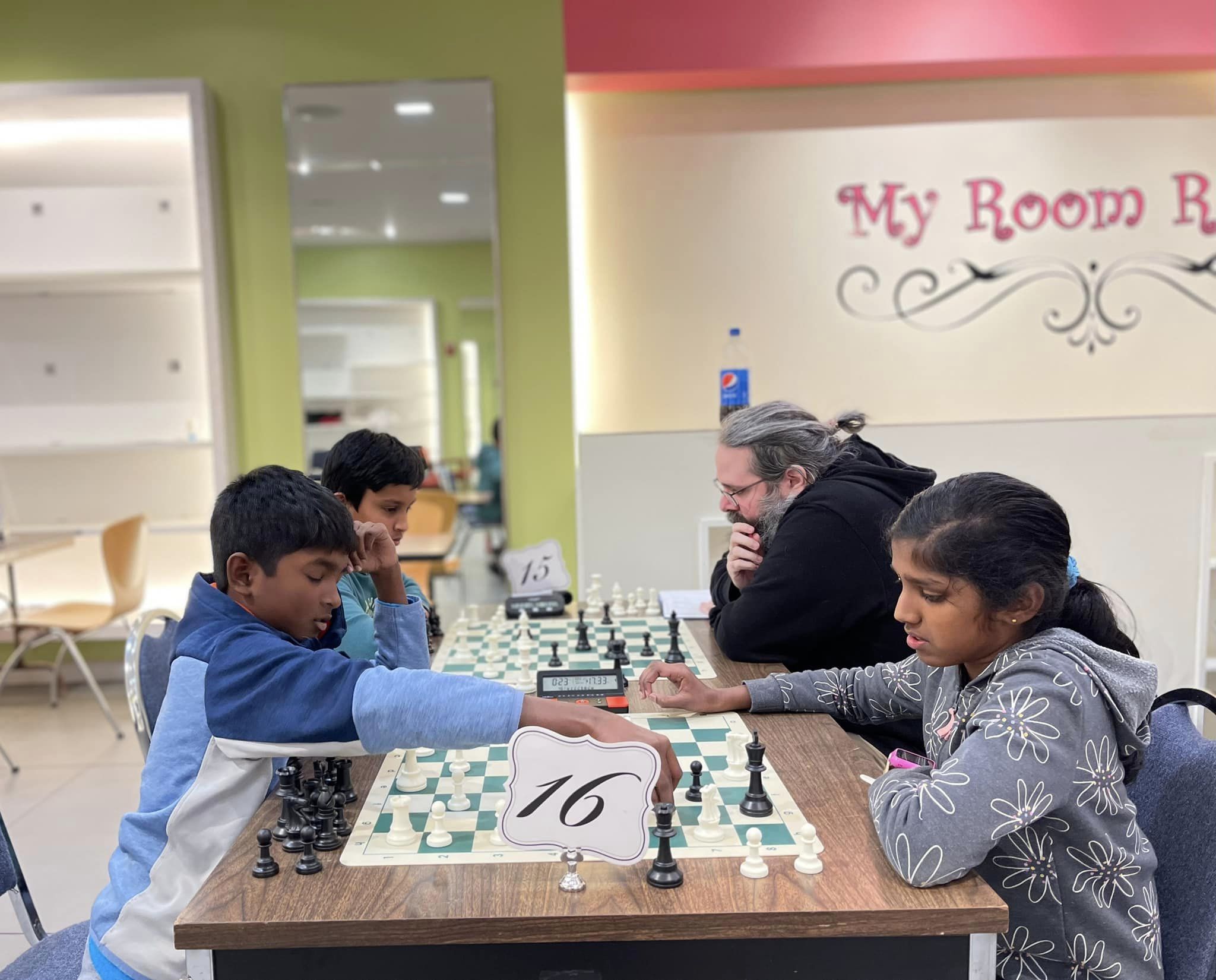b) Speaking of celebrations, we got to witness a very special one tonight as our dear Aryan celebrated his birthday between rounds with his chess family! Video attached. Everyone loved the cake (it was delicious!), and we want to give a huge shoutout to Aryan’s parents Sudha Madhavi for not only such a treat but also donating $200 towards our mission! Your generosity is truly appreciated!