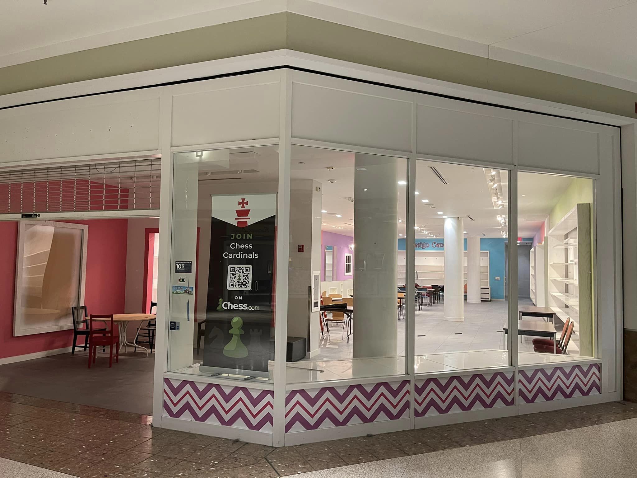 2/1/23 – Happy to inform everyone that Chess Cardinals has a new official club location at Chesterfield Mall, an open 3600 sq ft space now!! Thanks to Staenberg Group (TSG) for donating the space to us! We are relocating all our Chess Club activities to Chesterfield Mall (Unit#156) from next Monday onwards (2/6/2023). The club is on the ground floor, near Arch Pickleball/Badminton Courts. We recommend parking near the Cheesecake Factory and take escalator or elevator down to ground floor.
