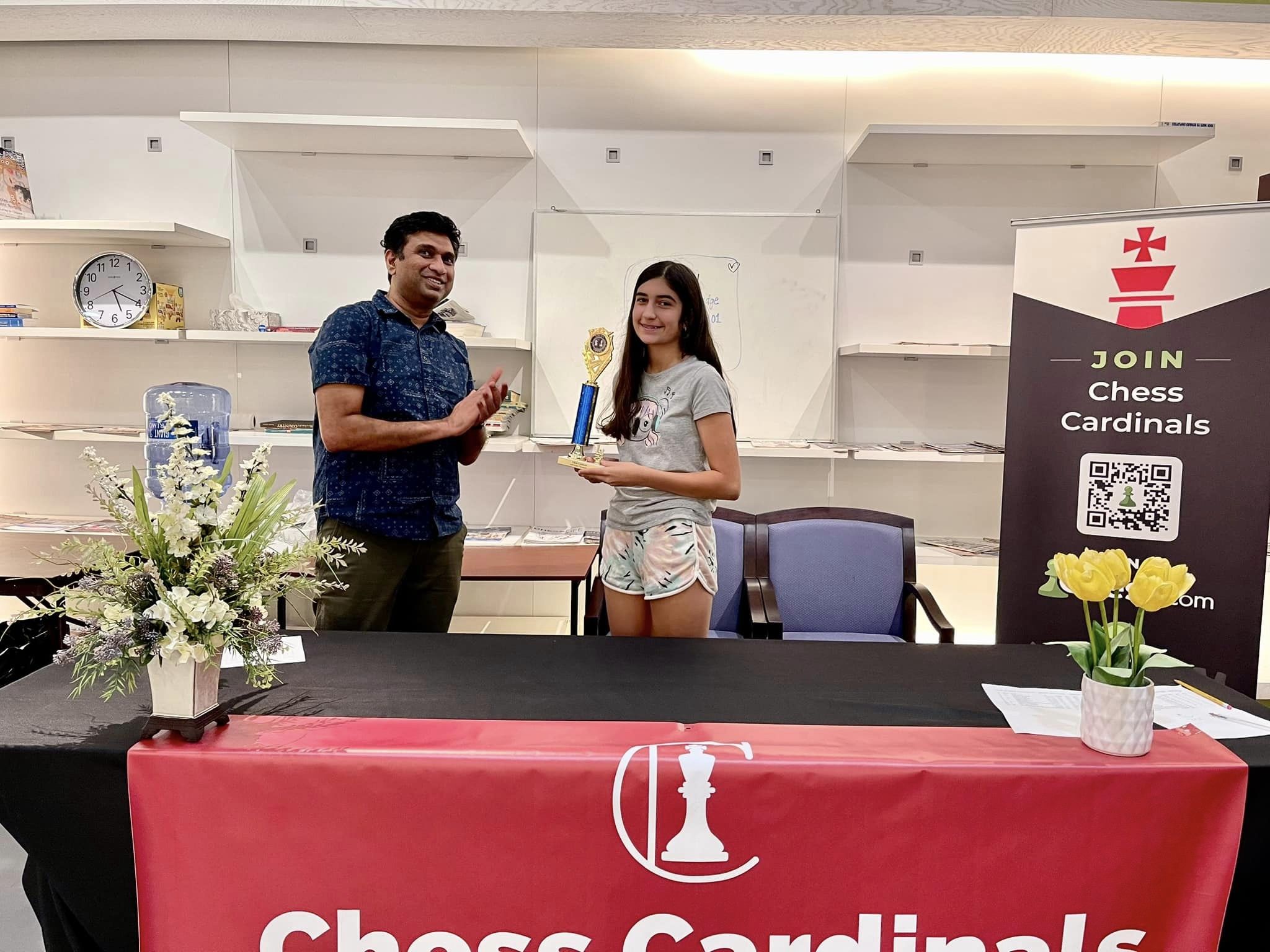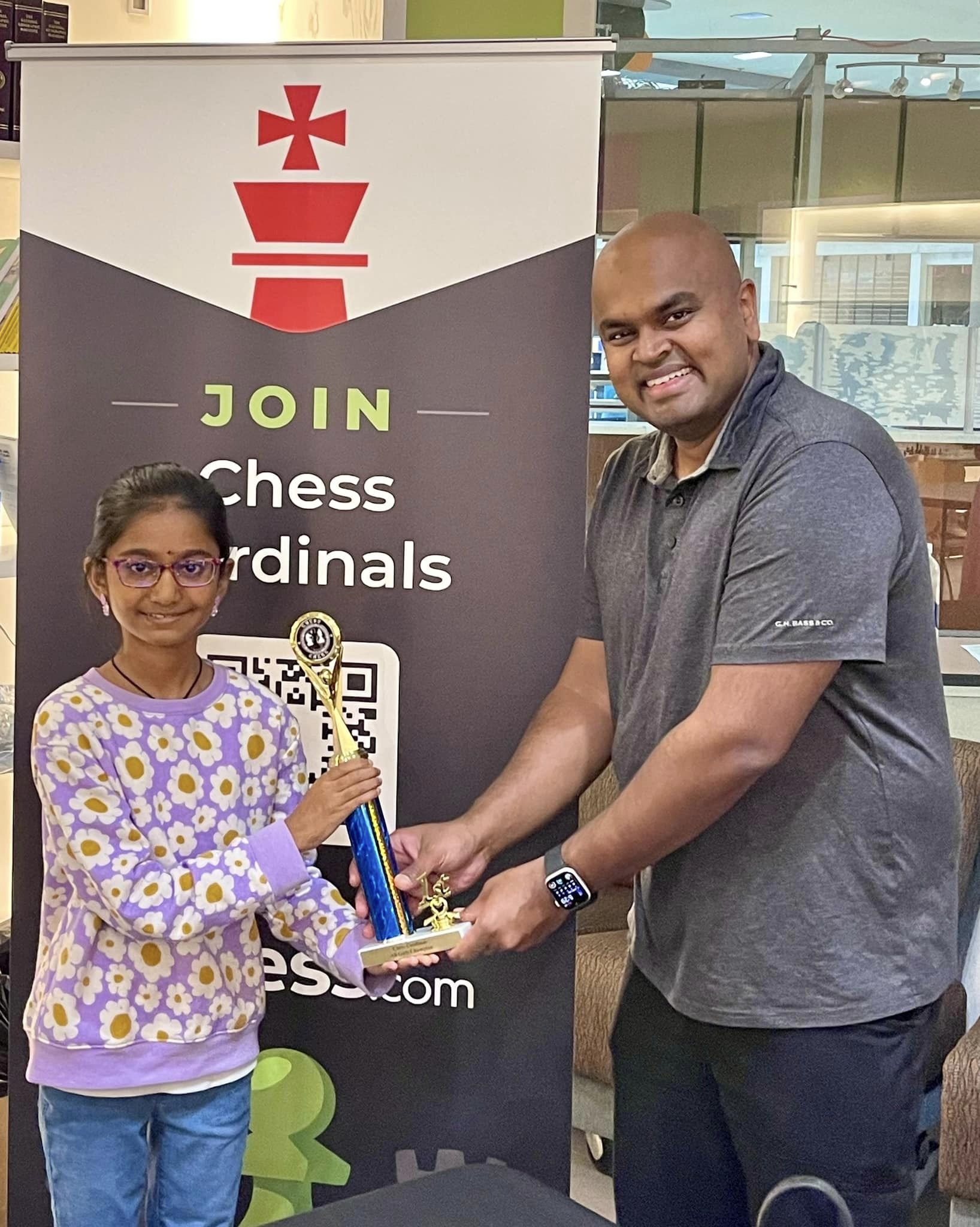 We are delighted to announce the successful completion of the inaugural Chess Cardinals C4K All Girls Tournament, a platform designed to empower girls in the realm of chess while fostering friendships and enhancing female participation. A total of 16 remarkable young girls took center stage in this tournament. The games unfolded in a thrilling fashion, replete with moments of sheer brilliance and nail-biting finishes. Devanshi emerged as the definitive champion, exhibiting exceptional skills to secure an impressive 3-point victory. Suman and Vihaana displayed remarkable skill, finishing in close succession with 2.5 points each. Additionally, a five-way tie for the third position was achieved by Milly, Nidhi, Anu, Diya, and Advika, each securing a commendable 2 points. Congratulations to each one of you and also, every player who participated!! We extend our sincere gratitude to the parents whose steadfast support bolstered this event, and to the volunteers who ensured its seamless execution. Furthermore, we would like to express our deep appreciation to Riley’s Way Foundation for their generous grant, a vital contribution that enabled the realization of this exceptional event. As we look ahead, we are thrilled to announce that the Chess Cardinals C4K All Girls Tournament will be a recurring fixture, taking place on the last Sunday of every month. Join us in celebrating the spirit of competition and camaraderie on September 24th. We invite you to help us spread the word and make this ongoing endeavor even more rewarding.