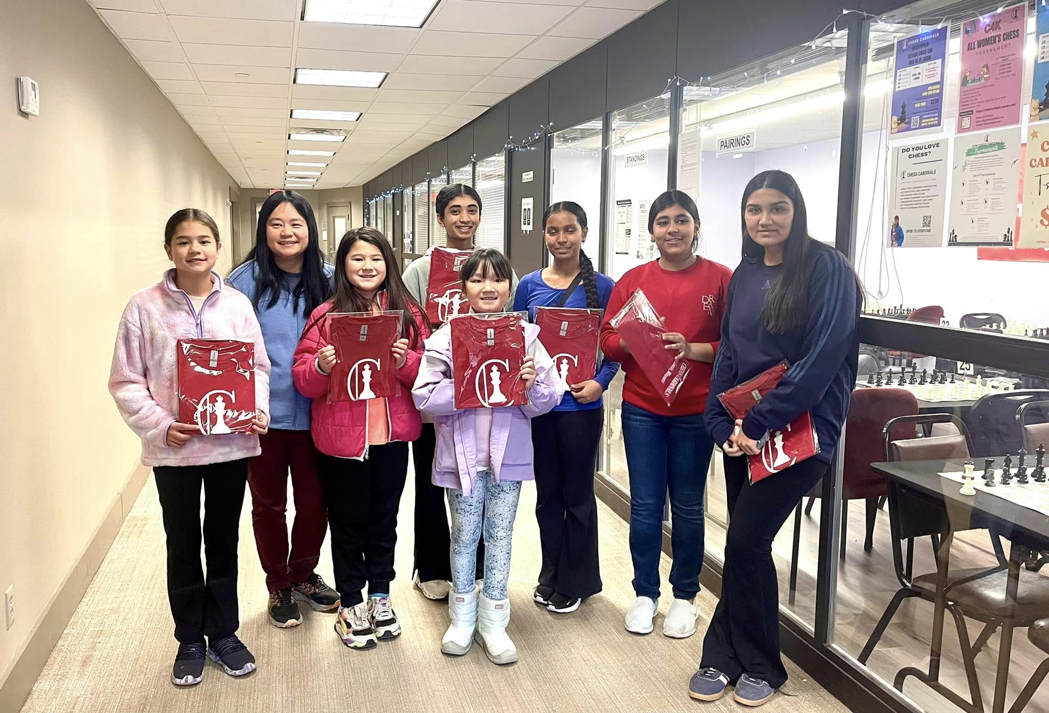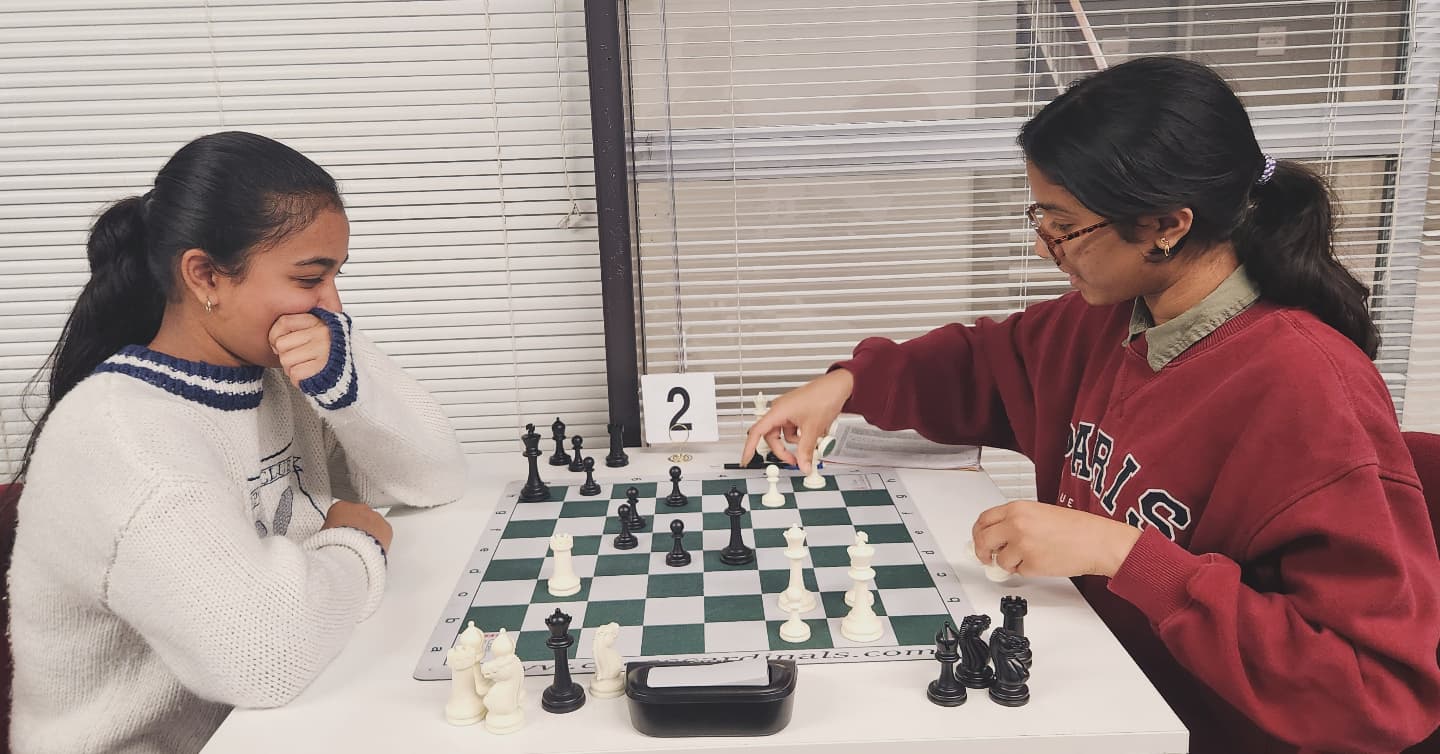 Our All-Women’s Chess Tournament saw a fantastic turnout with 20 players. The atmosphere was electric, and the endgames were nail-biting! The top board even ended in a thrilling draw and a big congratulations to Meghna on Board-2 in the final round for winning the Championship in a decisive victory! Her twin sister Anagha secured the runner-up position. Well played, both of you! A special shoutout to Amber Jordan and Alison Foo-Karna our amazing volunteer parents who not only participated in the tournament but also graced the prize-giving ceremony. Thank you for your dedication!!