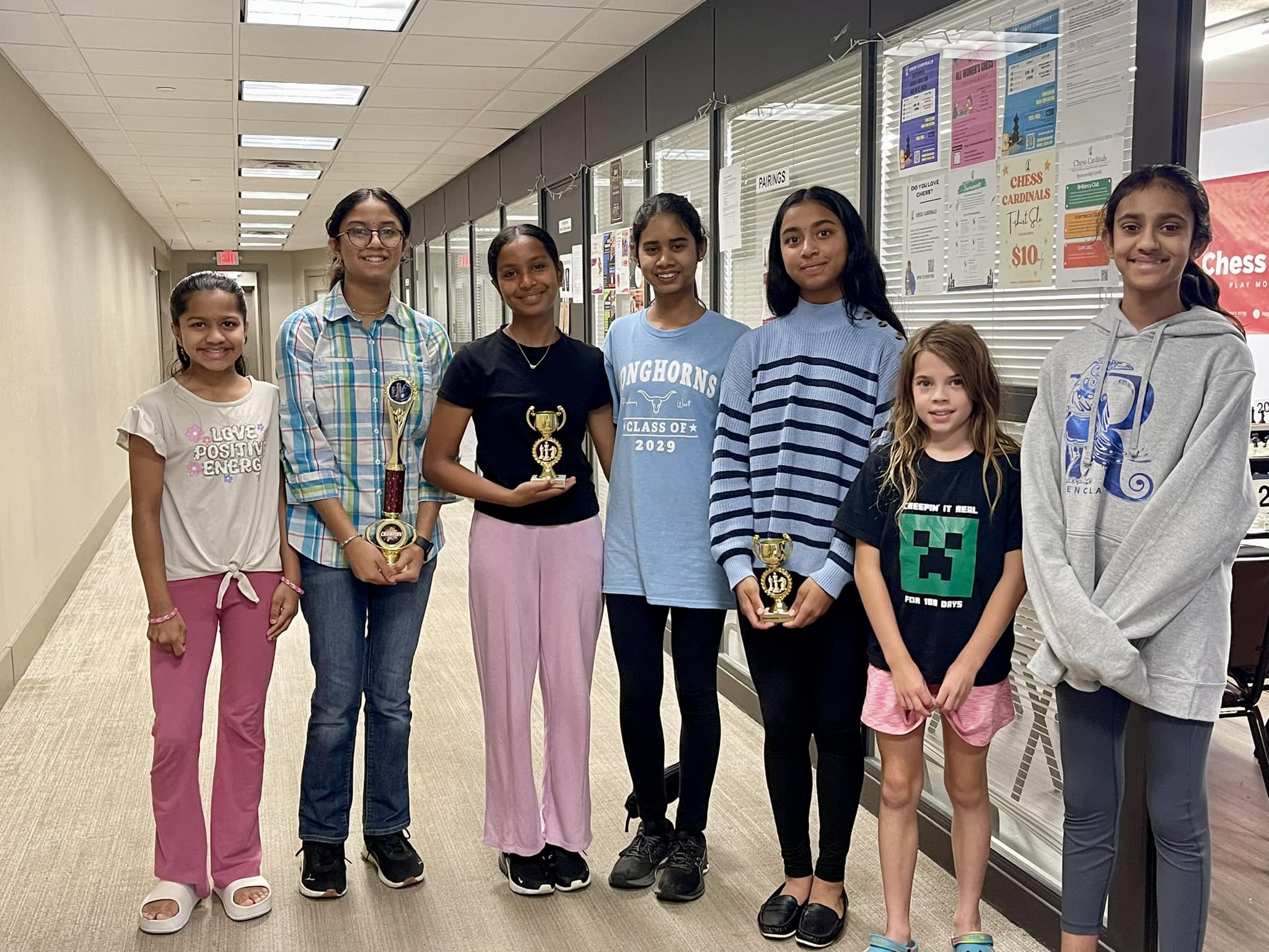 Hey everyone, quick update about the 3rd C4K All Girls Chess Tournament at Chess Cardinals Center! 🤩 So, we had a bit of a low turnout this time, but 8 amazing players still showed up and gave it their all in 4 intense rounds. 🏆 And guess what? It was a nail-biter! Suman, Anagha, and Vihaana totally rocked it and ended up tying for the top spot. Go girls! 🥳 But the fun didn’t stop there – everyone else also got some cool consolation prizes, so no one left empty-handed. 🙌 Big shoutout to Dr. Hari for treating us to a scrumptious cake. 🍰 What’s chess without a sweet treat, right? And last but not least, we couldn’t have done it without the amazing support from Riley’s Foundation. 🙏 Their grant made this whole event possible, and we’re super grateful! All in all, it was more than just a chess tourney – it was a true girls’ fellowship. Thanks to everyone who joined and supported us!