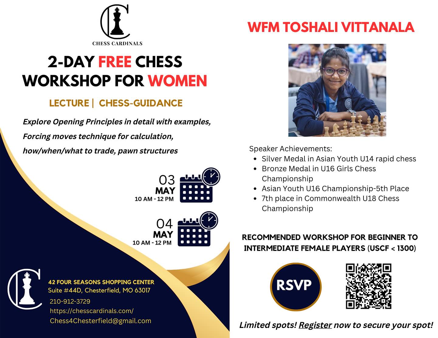 03May to 04May2025: Two Day USCF WOMEN’S CHESS workshop