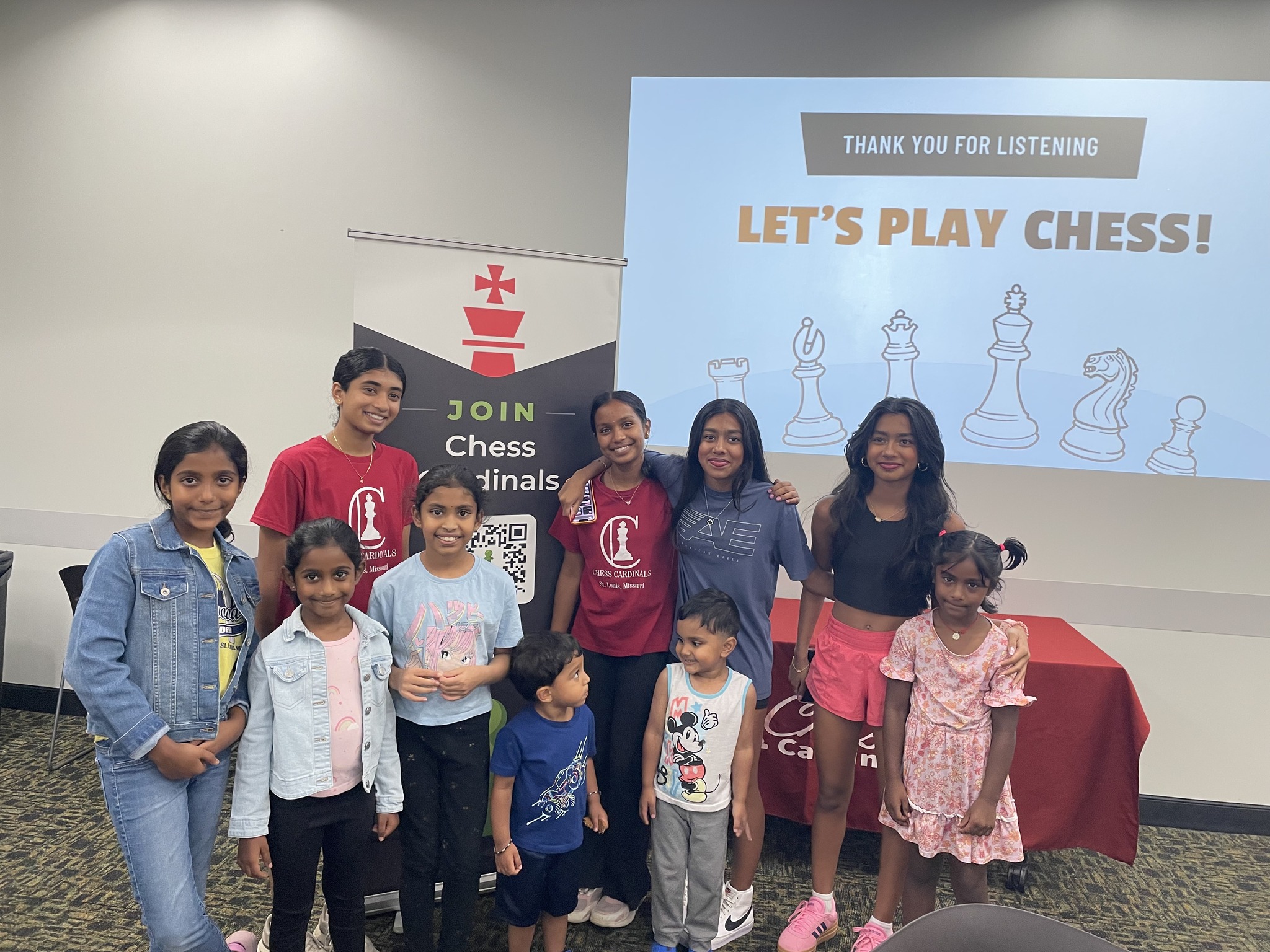 We had a blast at the Checkmate Challenge Community Chess Tournament at Lindbergh High School! As part of our school outreach program, we set up a booth to share our mission and highlight our various tournaments and educational programs. It was inspiring to see so many people interested in our efforts to increase girls’ participation in chess. Thanks to US Chess women’s grant support, we’ll be providing USCF memberships to girls and organizing more dedicated tournaments and lectures. A huge thank you to Aleksey Kazakevich and Robert Hudson for inviting us to this event. We couldn’t have done it without our amazing volunteers Satish, Ankit Singhal, Jitesh Gupta who dedicated their Saturday morning to Chess Cardinals. Special mention to youngsters, Avy and Pritish. You guys are the real MVPs!