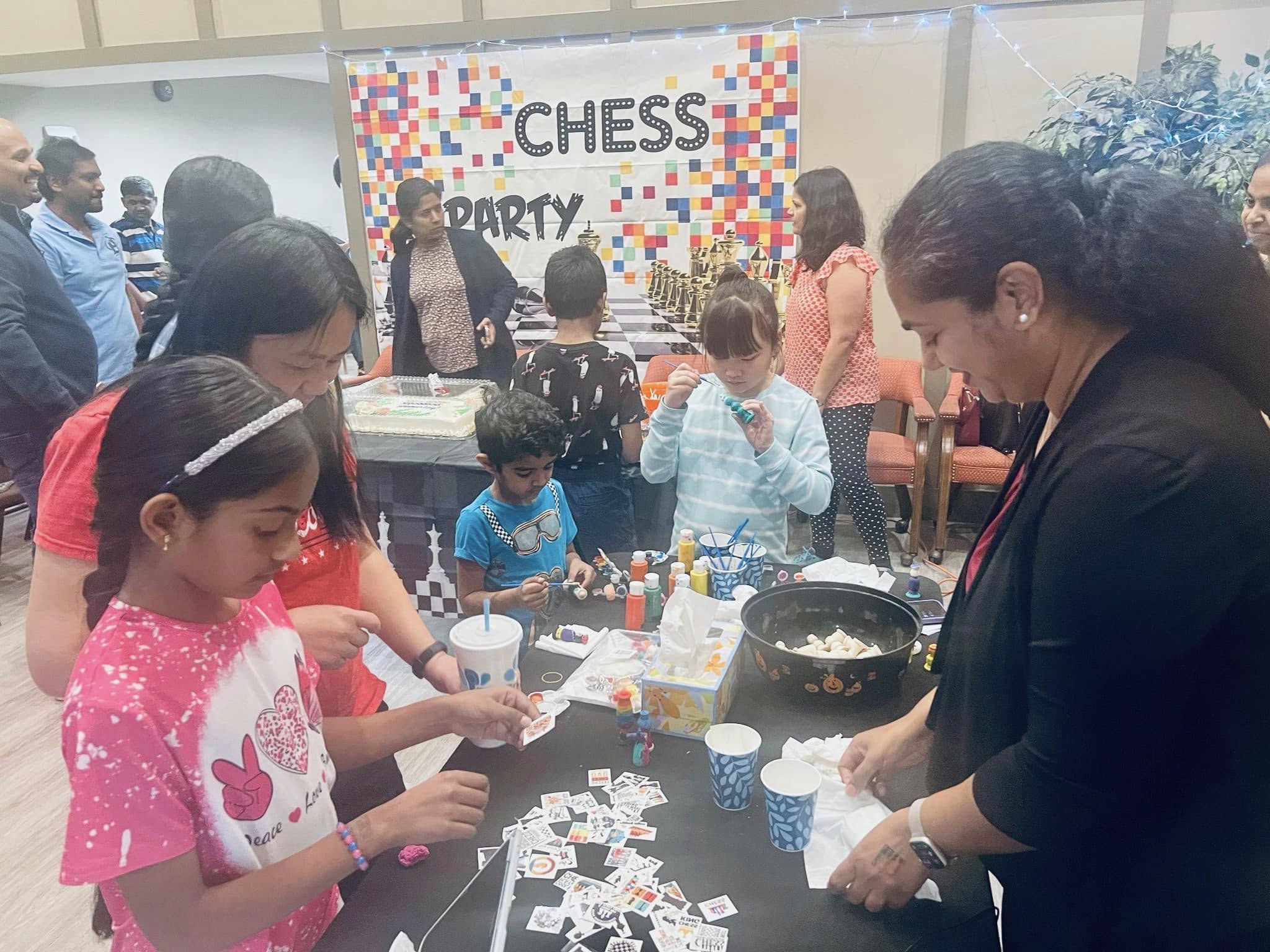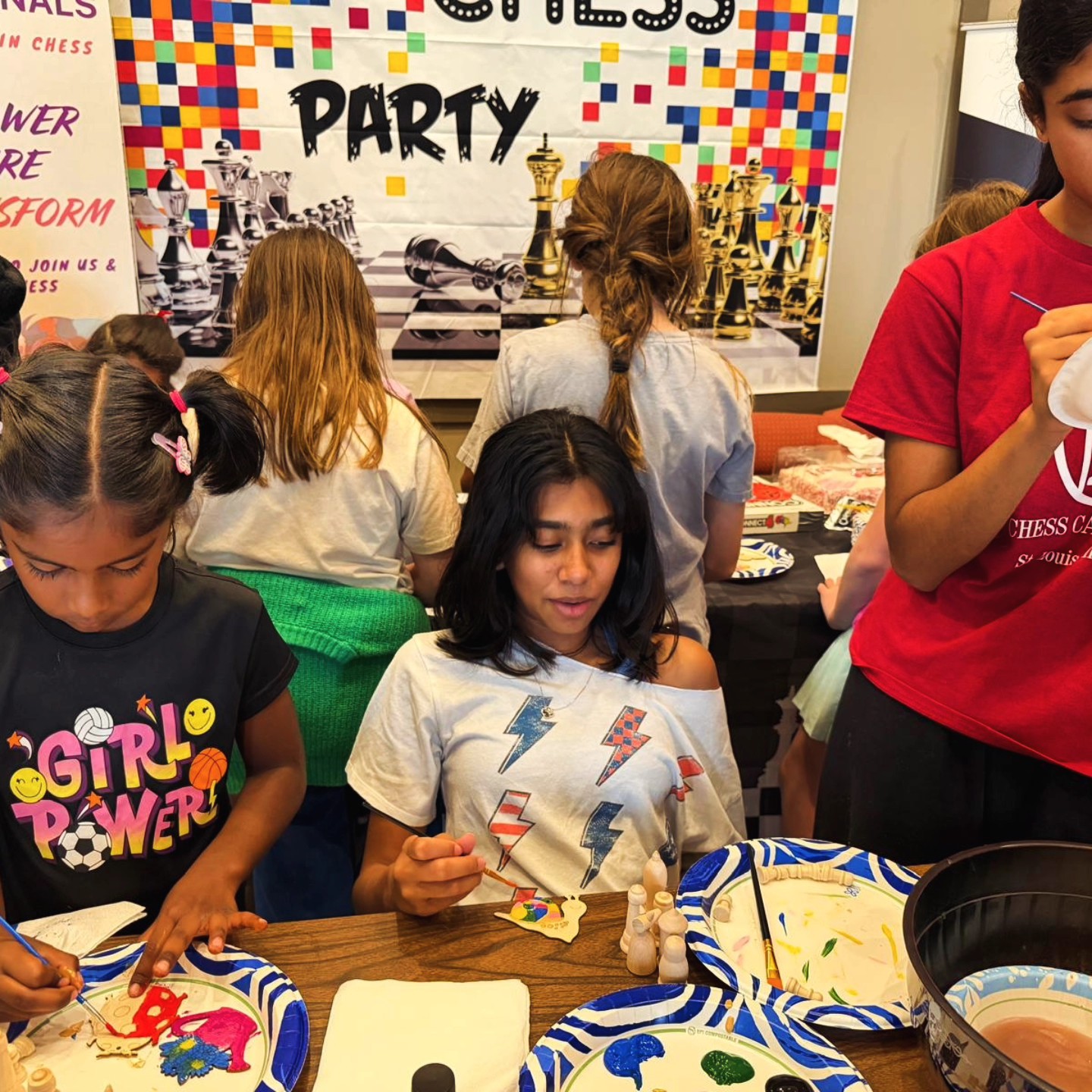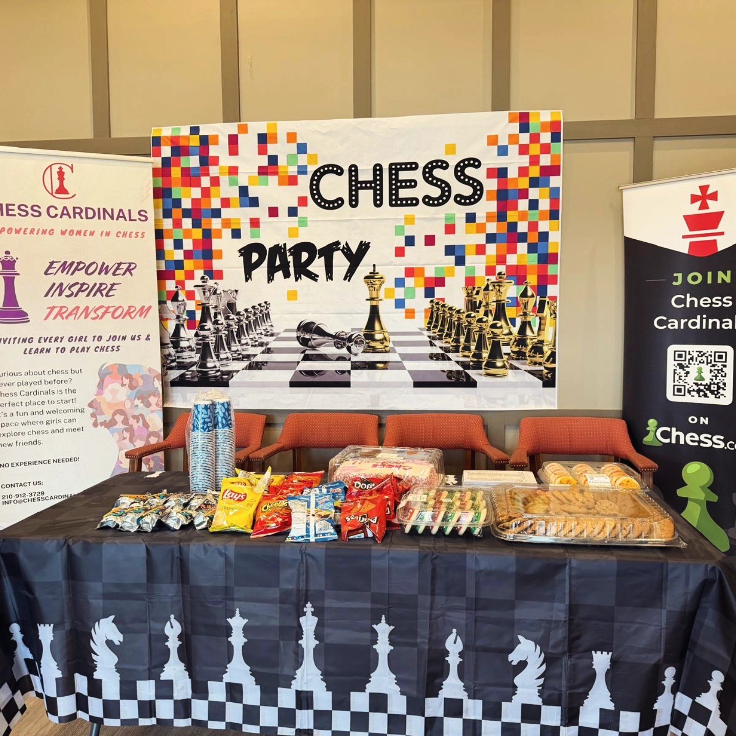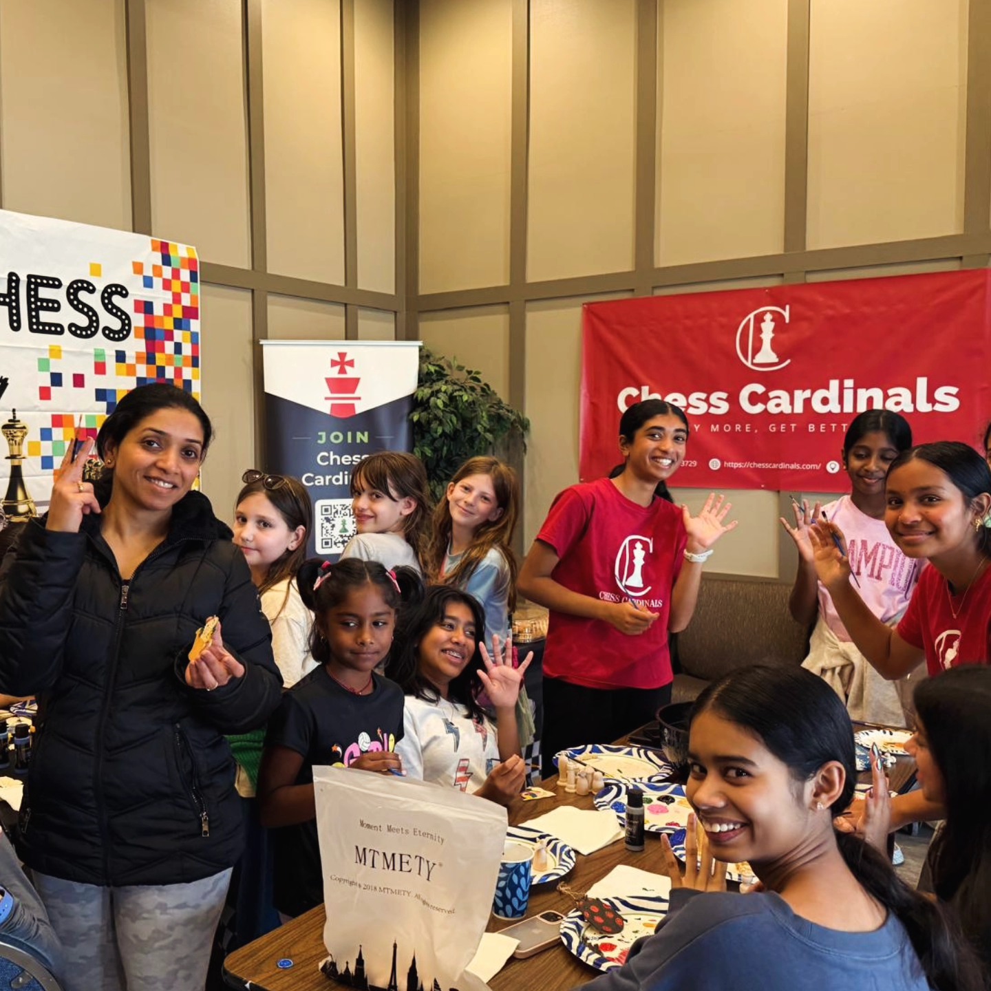 What an incredible International Women’s Day celebration and Monday Gambits at Chess Cardinals! We were thrilled to welcome over 60 participants, including talented female chess players, supportive parents, relatives, dedicated teachers, and fellow players who came to cheer everyone on. The atmosphere was electric with fun and camaraderie! We enjoyed exciting chess games, a thrilling puzzle race, creative chess piece painting, and fun temporary tattoos. Everyone loved the delicious cake inscribed with “Chess Cardinals,” along with cookies, and pizza. This was truly one of our most memorable events, and we couldn’t have done it without the amazing organizing team led by Abirami Sureshkumar and Namita Bikram, and the many fantastic volunteers who supported them. Together, we’re building a strong and inclusive community, celebrating the incredible women in chess and in our lives! Thank you to everyone who made this day so special!! We want to also thank the US Chess Federation for their wonderful support to our women’s chess excellence program and the Riley’s way foundation for the C4K fellowship.